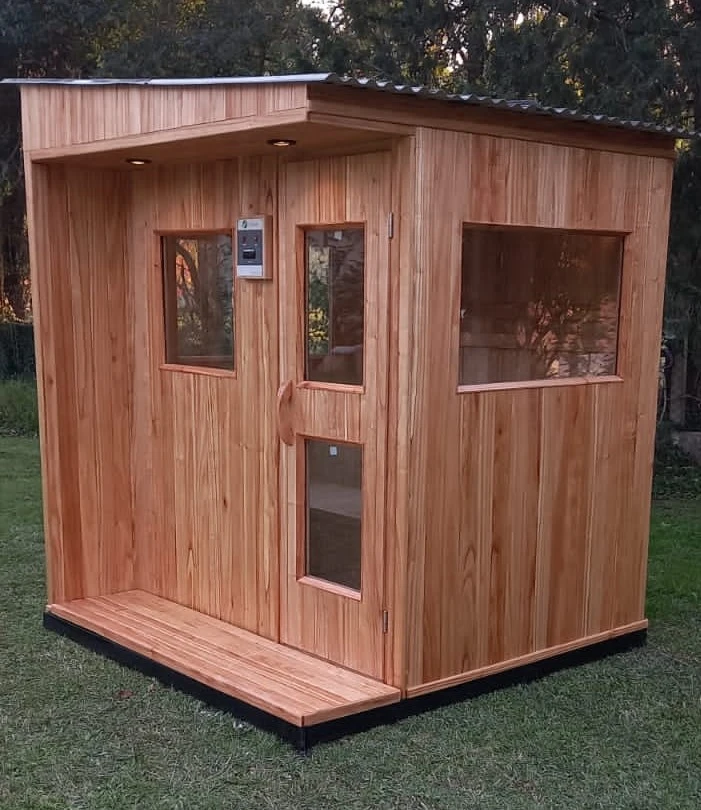 "Nuestras cabañas de sauna para exterior están diseñadas para integrarse armoniosamente en cualquier jardín, ofreciendo un espacio de relajación único en contacto con la naturaleza. Fabricadas con un sistema de paneles ensamblables, garantizan una estructura sólida, resistente y fácil de instalar. Con materiales ecológicos y un proceso artesanal, brindan el equilibrio perfecto entre diseño, confort y bienestar, permitiéndote disfrutar de una experiencia de sauna inigualable al aire libre."